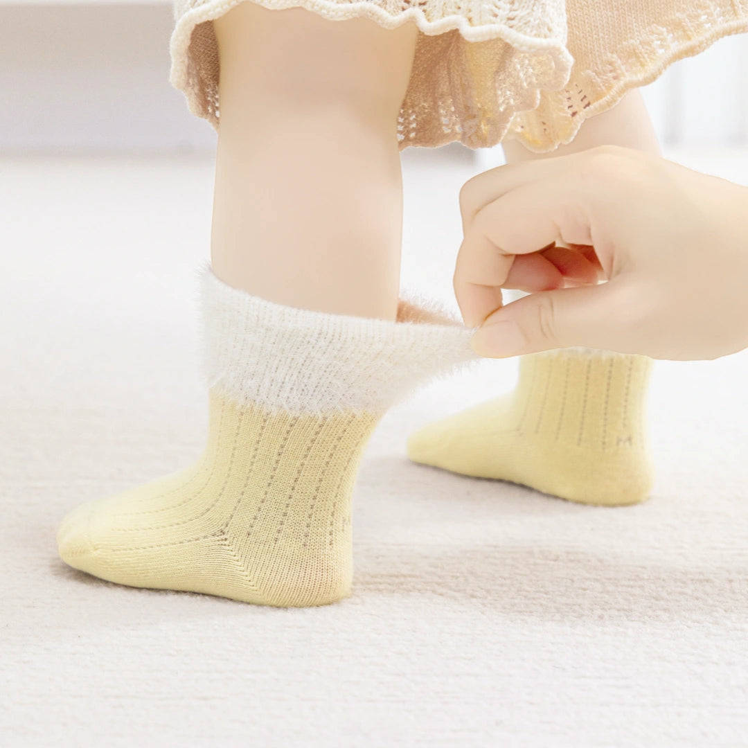 Safety Grip Bottom: Winter floors can be slippery. That’s why these socks come with a text-textured "KIDS SOCKS" Non-Slip Grip on the sole, providing traction for wobbly walkers.