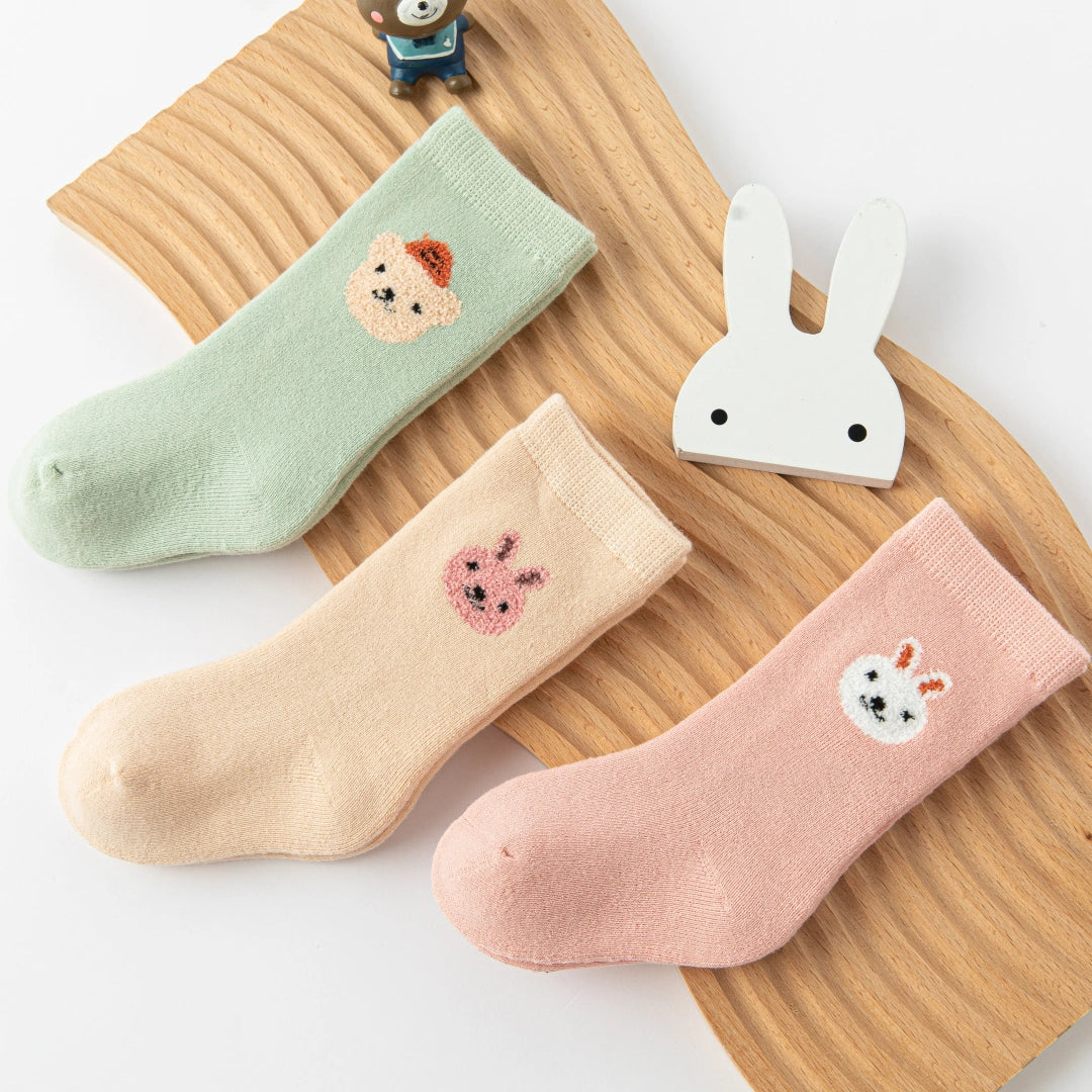 Baby’s Fuzzy Terry Rabbit Embroidery Socks 3-Pack
