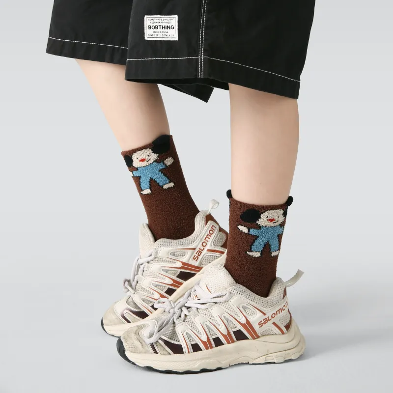 Kid's Cozy 3D Dog Fuzzy Socks - 4 Pairs