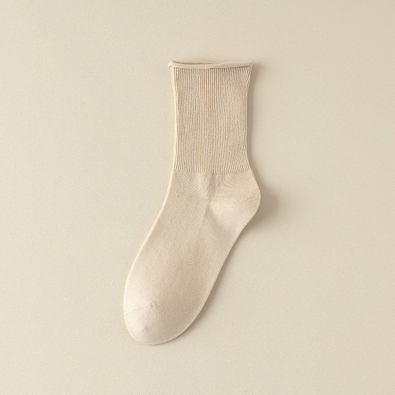 Women‘s 98% Cotton Soft Ribbed Crew Socks - color variant: Oatmeal