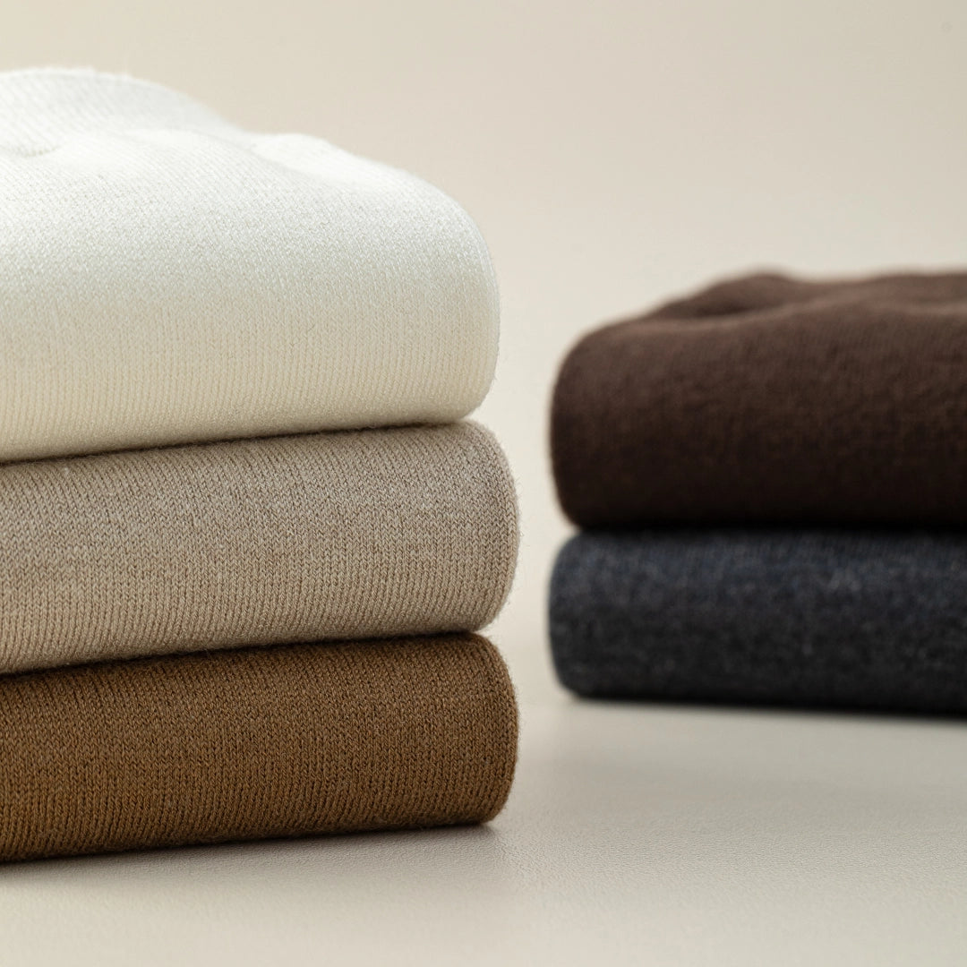 We never blend with inferior wools. We strictly select authentic Australian Merino for its itch-free, temperature-regulating perfection.